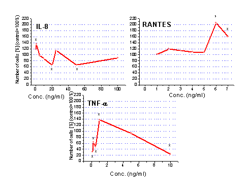 Chemotactic effect of these auto- and paracrine ligands was investigated by us. Data showed that three representative chemokines/cytokines (IL-8, RANTES and tunos necrosis factor alpha) have a concentration dependent chemoattractant moiety still in the unicellular Tetrahymena.